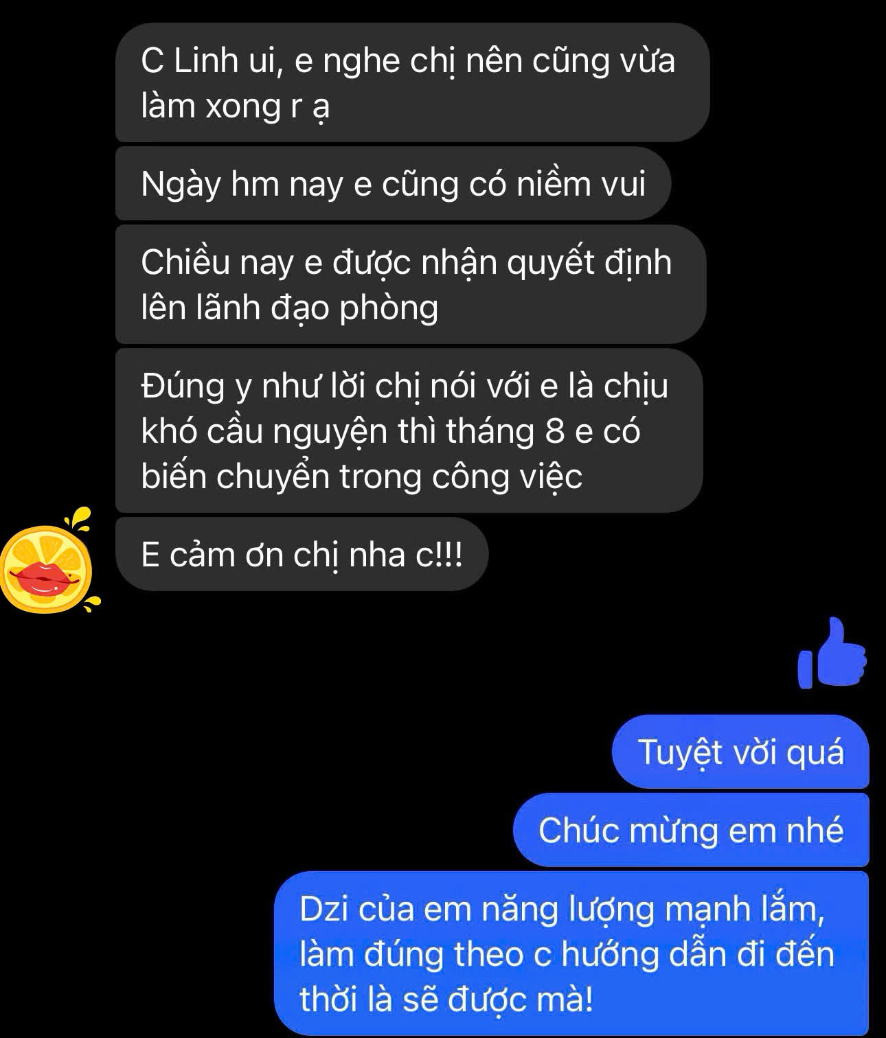 “Linh Dzi rất lắng nghe, tư vấn đúng với năng lượng và mong muốn của mình.”
